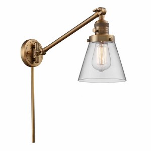 One of our largest and original collections, the Franklin Restoration is made up of a vast selection of heavy metal finishes and a large array of metal and glass shades that bring a touch of industrial into your home. Solid brass 180 degree adjustable swivels / 3 Way (High-Low-Off) switch included on socket / Adjustable sideways as well as forward/backward and up/down / Fixture can be hung with bulb facing up or down as a wall mount / Includes two 12 inch solid tube cord covers / Rated for 100 watt maximum / UL/CUL Damp Rated / Compatible with Incandescent, LED and Halogen bulbs / Fixture can be installed as hardwired or plug-in / Molded plug with 7 feet of wire. ,
