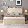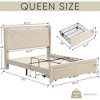 Queen Size Bed Frame with 2 Storage Drawers, Lined Fabric Upholstered Headboard with Charging Station, Storage Shelf, No Box Spring Needed, Beige