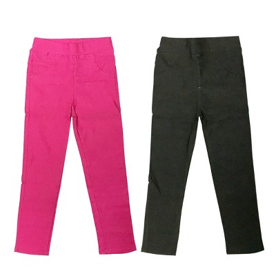 Wrapables Faux Jean Skinny Leggings for Girls (Set of 2) Fuschia and Black Small