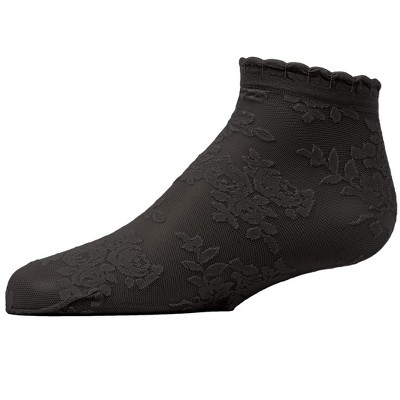 Memoi Botanic Sheer Girls Floral Embroidered Anklet Socks Black L