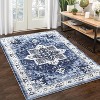 4x6 Area Rug Washable, Low-Pile Rug with Non-Slip Rubber Backing, Boho Vintage Style, Ideal for Bedroom Living Room Home Office Playroom, Blue