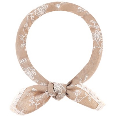 INSPIRE CHIC Women's Floral Printed Cotton Linen Lace Trim Square Scarves 1Pc Asparagus Fern-White 60x60cm/23.6x23.6"