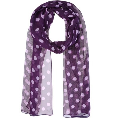 INSPIRE CHIC Women 1950s Retro Polka Dots Chiffon Lightweight Soft Sheer Long Scarves 1Pc Dark Purple 160x50cm/63.0x19.7"