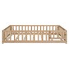 Okak Full Size Platform Bed Frame with Door & Fence,Wooden Floor Bed for Toddlers/Kids Bedroom,Natural