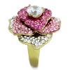 Slickblue Women’s IP Gold Stainless Steel Floral Ring with 8mm Round Clear CZ Center Stone, Pave Detailing, size 5-10 - 1 of 4