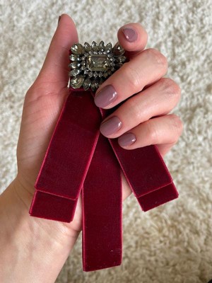 INSPIRE CHIC Women's Velvet Pre-Tied Bowknot Brooch Pin with Rhinestone for Wedding Party Burgundy One Size
