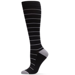Our Unisex Thin Striped Antimicrobial Nylon 15-20mmHg Graduated Compression Socks will bring you the relief you need in no time. With a moderate compression of 15-20 mmHg, our graduated compression technology may promote blood circulation and provide relief for your tired legs, with a comfort cuff that stays in place without squeezing too tightly. Nylon fabric makes these a smooth, silky wear all day long. This sophisticated thin striped pattern with heel/toe, available in multiple colors, will help you stand out and stay comfortable.