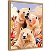 This artwork depicts a playful group of polar bears surrounded by colorful foliage. The use of vivid colors and soft textures creates a warm and inviting scene. The composition exudes a sense of joy and tranquility in the natural world. This canvas art print was created by Uma Gokhale and printed in Waunakee, WI. It is stretched across a solid surface to resist sagging. We use only premium, high-tension canvas. Our exclusive stretching techniques hide corner folds and provide a taut canvas surface. The artwork is authentically licensed. The canvas appears as if it is floating in the frame because it has a narrow gap between the edge of the canvas and the frame. Our canvas items are individually made using traditional custom framing techniques, it has the quality you would expect from your local frame shop.