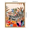 The artwork features two zebras standing amidst an abstract jungle setting, surrounded by vibrant, stylized leaves and exotic fruits. The scene is infused with a rich array of colors, creating a lively and dynamic atmosphere. The use of bold lines and contrasting colors highlights the zebras and enhances the overall visual impact. This canvas art print was created by Uma Gokhale and printed in Waunakee, WI. It is stretched across a solid surface to resist sagging. We use only premium, high-tension canvas. Our exclusive stretching techniques hide corner folds and provide a taut canvas surface. The artwork is authentically licensed. The canvas appears as if it is floating in the frame because it has a narrow gap between the edge of the canvas and the frame. Our canvas items are individually made using traditional custom framing techniques, it has the quality you would expect from your local frame shop.