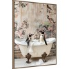 In this whimsical artwork, two penguins are adorably perched in a vintage clawfoot bathtub filled with bubbles. The backdrop features a lively bird and floral wallpaper, creating a playful and surreal setting. The juxtaposition of the penguins against the antique decor adds a humorous and imaginative touch to the scene. This canvas art print was created by Niky Rahner and printed in Waunakee, WI. It is stretched across a solid surface to resist sagging. We use only premium, high-tension canvas. Our exclusive stretching techniques hide corner folds and provide a taut canvas surface. The artwork is authentically licensed. The canvas appears as if it is floating in the frame because it has a narrow gap between the edge of the canvas and the frame. Our canvas items are individually made using traditional custom framing techniques, it has the quality you would expect from your local frame shop.