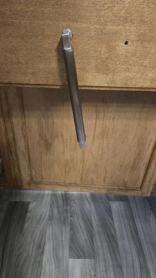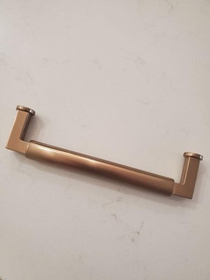 [This review was collected as part of a promotion.] This is a beautiful heavy cabinet pull! It’s longer than all of my cabinets, so we’ll use it as a kitchen towel rack. It’s a beautiful brushed bronze color. It feels heavy and very sturdy.