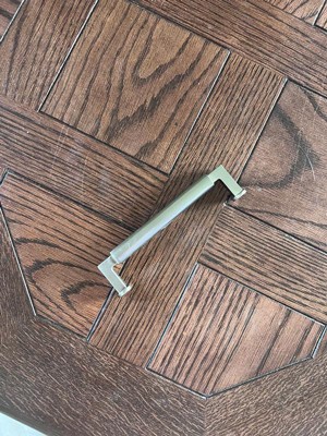 [This review was collected as part of a promotion.] I love the champagne bronze!! It's a great middle ground sheen - that is timeless. I love that the end have the square look but the pull part that you out your hand on is round.