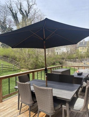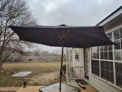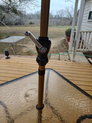 [This review was collected as part of a promotion.] This umbrella is awesome. It is easy to open with the hand crank. It is huge and gives a lot of shade. It fits with all of our outdoor tables. It looks and feels like it will last a while, which is great here in Texas.