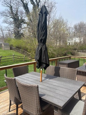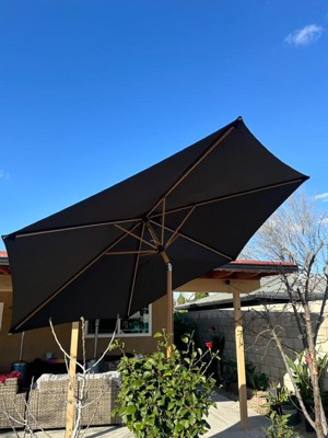 [This review was collected as part of a promotion.] It’s a very tall patio umbrella that will cover you very well. It’s easy to put up it has a mechanism where you just have to turn the handle to make it open. It makes it easy to put up all the time. The wood details are super nice and give that amazing look. Loved the black color. The only thing is that you will have to purchase a separate piece which will be a weight to put under to hold the umbrella up. I can definitely take to beach even because of how easy is to store. Even if there are bad winds I can simply store and assemble back.
