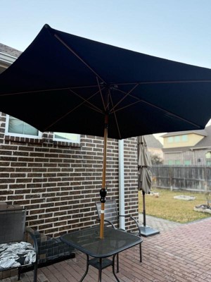 [This review was collected as part of a promotion.] This umbrella looks really nice and adds a warm touch to the backyard. The wood grand design gets it a natural look, but it still feels study and well made. It definitely makes the patio area feel more finished. The crack system works smoothly and makes opening and closing it easy. The tilt feature is also very helpful when the sun shifts during the day. One thing to keep in mind is that it does not come with a base so you will need to purchase one separately. Its also a bit bigger than expected but that actually turned out to be a good thing because it provides a lot of shade.