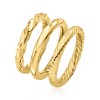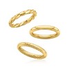 18KT GOLD OVER STERLING — 18kt yellow gold over sterling silver jewelry set: three polished rings. Each ring is 1/8 in. wide. Size 5.