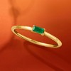 Yearning for color in your stack? Go with this dainty ring! It features a .10 carat baguette emerald stationed on the center of the simple 14kt yellow gold band. 1/16" wide. Emerald ring. Stone InformationGem Type 1: EmeraldStone Cut 1: Good-CutStone Color 1: GreenStone Clarity 1: GreenStone Shape 1: Baguette-ShapeStone Creation Method 1: NaturalStone Treatment Method 1: OiledStone Weight 1: 0.10 CaratsNumber Of Stones 1: 1