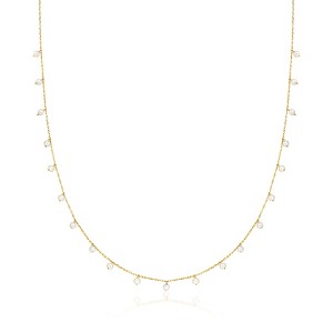 GENUINE 10KT GOLD — 2.5-3mm cultured pearl station necklace in 10kt yellow gold. Freshwater pearls. 0.75mm rope chain is 18 in. long. Polished finish. Springring clasp.