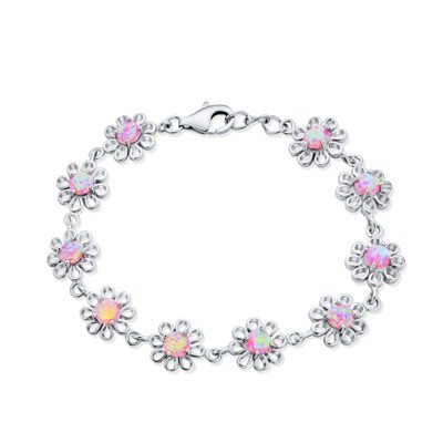 Dreamy 6x4mm oval Ethiopian opal cabochons beam with glamorous colorplay in this unique take on a traditional tennis bracelet, set in sterling silver. Lobster clasp, opal tennis bracelet. Stone InformationGem Type 1: OpalStone Cut 1: Good-CutStone Color 1: WhiteStone Clarity 1: WhiteStone Shape 1: Oval-ShapeStone Creation Method 1: NaturalStone Treatment Method 1: ImpregnatedStone Weight 1: 0 CaratsNumber Of Stones 1: 27
