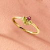 Define your style with stack-and-layer essentials from our Pure Collection. Create the perfect look to show off your personality. Perfect for garden and cottagecore aesthetics, our dainty flower ring shimmers with a simple .10 carat round rhodolite garnet bloom and .17 ct. t.w. marquise peridot leaves. Crafted in polished 14kt yellow gold. 1/4" wide. Peridot and rhodolite garnet flower ring. Stone InformationGem Type 1: PeridotStone Cut 1: Good-CutStone Color 1: GreenStone Clarity 1: GreenStone Shape 1: Marquise-ShapeStone Creation Method 1: NaturalStone Treatment Method 1: Not-TreatedStone Weight 1: 0.10 CaratsNumber Of Stones 1: 1Gem Type 2: PeridotStone Cut 2: Good-CutStone Color 2: GreenStone Clarity 2: GreenStone Shape 2: Marquise-ShapeStone Creation Method 2: NaturalStone Treatment Method 2: Not-TreatedStone Weight 2: 0.07 CaratsNumber Of Stones 2: 1Gem Type 3: Rhodolite-GarnetStone Cut 3: Good-CutStone Color 3: Violet-BlueStone Clarity 3: Violet-BlueStone Shape 3: Round-ShapeStone Creation Method 3: NaturalStone Treatment Method 3: Not-TreatedStone Weight 3: 0.10 CaratsNumber Of Stones 3: 1