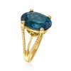 Oval shape london blue topaz and round shape diamond accent. Polished 18kt yellow gold over sterling silver.