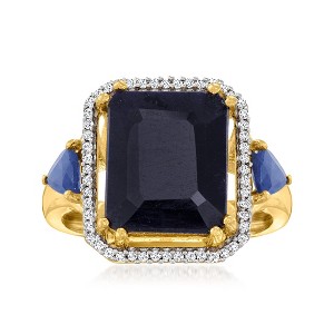 18kt yellow gold over sterling silver, sapphire and diamond ring for women.