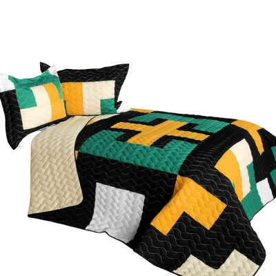 Enhance the beauty of your bedroom with this 3-piece Full/Queen vermicelli-quilted patchwork quilt set. This set includes one quilt (90.5" x 90.5") and two standard quilted shams (24" x 33.8"), all crafted from soft TC fabric. Featuring a vibrant patchwork design in green or red, the set adds color and texture to any room, creating a cozy, welcoming atmosphere. The intricate vermicelli quilting offers rich surface texture and durability. Each piece is handmade, with some quilting potentially slightly curved for a unique touch. The quilt set is reversible, pre-washed, and pre-shrunk to ensure long-lasting comfort. It is machine washable on cold in a gentle cycle and can be tumble dried on low heat for easy maintenance. Whether you're updating your own space or looking for the perfect gift, this quilt set provides a stylish and practical solution for any bedroom.