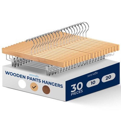 Totally impressed with my Wooden Pants Hangers. The 30 pack is perfect for organizing, clips actually stay put, and I can spin my stuff easy. No regrets, would buy again!