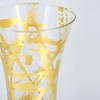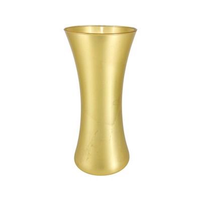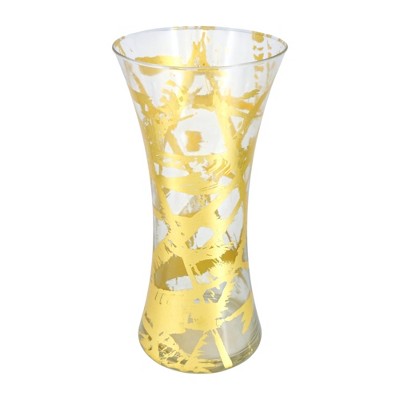 This wide flared glass vase is a handcrafted showpiece designed to enhance floral arrangements or stand out as a decorative element. Made from luminous clear glass, each vase is handblown and individually gilded with gold metal leaves, giving it a distinct finish. The curved profile and smooth flared opening provide both style and functionality-ideal for fresh flowers, pillar candles, or stand-alone display. Available in 12", 15", and 20" heights with a 6" diameter, it easily fits into a range of indoor and outdoor décor themes. Whether placed on a coffee table, mantel, or used as a centerpiece for special occasions, this vase adds eye-catching detail to any setting.