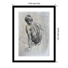 The artwork depicts a male figure seated and turning away, rendered in a detailed monochrome sketch. The artist captures the musculature and contours of the back with delicate shading and lines. There is a focus on anatomical accuracy and the natural posture of the human body. This framed art print was created by Samira Yanushkova and printed by Amanti Art in Madison WI. The print is giclee printed using fade-resistant inks for picture-perfect detail and incredible depth of color and finished with a 100% real wood frame. Individually made using traditional custom framing techniques, it has the quality you would expect from your local frame shop.