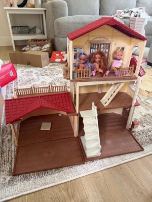 [This review was collected as part of a promotion.] This is adorable. My daughters are so excited about it. The country home is a sweet and cute little playhouse for the critters’ toys. It’s a really good size, and it has a cool set up. It took their dad about 10 minutes, if that, to set up. There are multiple rooms, a balcony, and it comes with lights to put in and different little things like a stairway, a pull down ladder, an abacus and baby things. The doors and windows open and clothes. No dolls included. They flooring is interchangeable and the house is foldable, so you can set up the house as you want. My girls really like that. You can kinda change it up each time you play. This is a perfect little house for the imagination. Littles can create the whole family, they can play and imagine and experience so much with just this little house.
