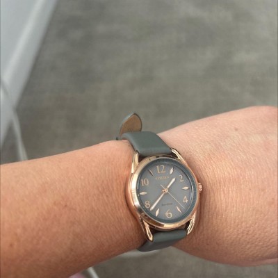 Citizen Ladies Eco-Drive Dress Classic Watch, Pink Gold-Tone Case,Grey Leather Strap, 3 Hand, Date