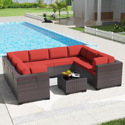 ALAULM 9PCS Outdoor Patio Furniture Set PE Wicker Rattan Sectional Sofa Patio Conversation Sets,Grey
