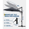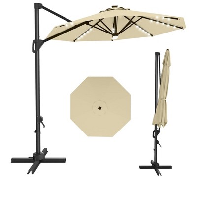 This 10FT offset patio umbrella features a cross-shaped base (unweighted) and a sturdy cantilever design for versatile shading. The umbrella offers 360-degree rotation adjustment, allowing flexible positioning in gardens, decks, or poolside areas. Constructed with wind-resistant fabric, it provides sun protection without fixed weight in the base - users may add weight for increased stability in windy conditions.