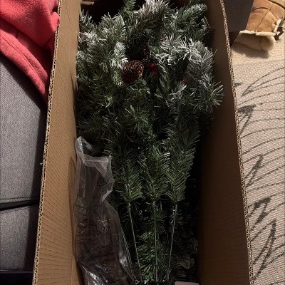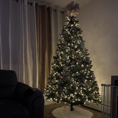 Christmas Tree Pre-Lit, Pre-Decorated Artificial 7.5ft Frosted Pine Holiday Decoration w/Frosted Tips, Pine Cones, Berries, Metal Base for Holiday