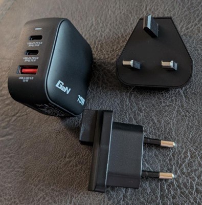 [This review was collected as part of a promotion.] Compact and powerful, this 70W GaN charger delivers fast charging for laptops, tablets, and phones simultaneously without overheating. Its three ports (2×USB-C + 1×USB-A) make it perfect for travel or desk setups, and the foldable plug keeps it pocket-friendly. Efficient, reliable, and much smaller than traditional chargers—ideal for anyone who needs speed and portability.