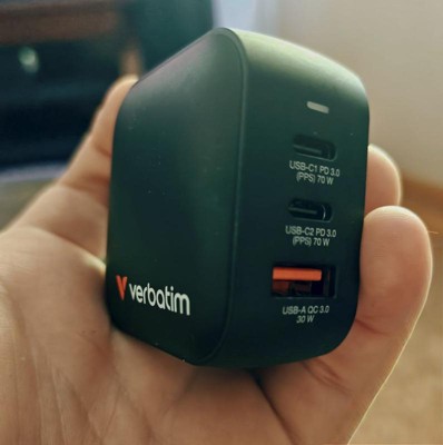 [This review was collected as part of a promotion.] We tried the Verbatim Mini GaN 3 Port Charger. This charger has 2 USB-C ports and 1 USB-A port meaning we can charge three devices at the same time! We love to bring this charger on road trips so we can all charge our phones and/or laptops at the same time. The prongs are retractable so this charger is compact and easy to pack and with a 70W output, my husband says it charges his phone much faster than chargers he’s used in the past. This is a great product!