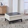 GDFStudio Lucia Modern 33.8" Solid Wood and Fabric Upholstered Round Storage Ottoman with Reversible Lid, Beige/Black