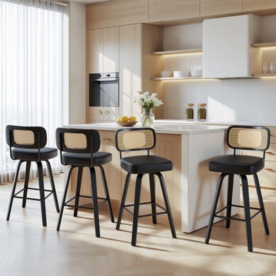 Garvee 24'' Swivel Bar Stools Set of 4 with Footrest, Modern Counter Height Barstools with PU Leather Upholstered and Metal Frame for Kitchen Island
