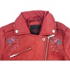 Yoki Little Girls' Floral Embroidered Design PU Faux Leather Jacket, Red, 4