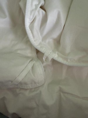 This is a fantastic lightweight down comforter, perfect for warmer months when you don’t want to be bogged down by a heavy blanket. It’s really well made, with organic cotton, great stitching and the standard corner tie loops for a duvet cover. A great option for a warm sleeper that wants cloud like comfort! Comes in a canvas bag, great for storing. Definitely recommend!