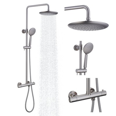 CASAINC 5-Spray Patterns 9.5 in. Thermostatic Rain Shower Faucet Wall Mount Dual Shower Heads in Spot Resist, Brushed Nickel