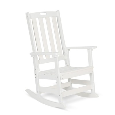 Aoodor Outdoor Rocking Chair, HDPE Slatted Porch Rocker with Armrests, All-Weather Design for Outdoor or Indoor