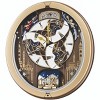Seikos Melodies in Motion Clocks are enchanting and magical. This clock brings a skyline and starry night to life. On the hour, the dial opens to reveal a turning decorative wheel with Swarovski crystals and plays one of eighteen of the finest quality sound melodies plus an opening and ending melody. It has a metallic gold case, a demonstration button, and volume control. This clock is enclosed in glass, the pendulum features Swarovski crystals, and an off/on switch. This clock will light up your house yearround.