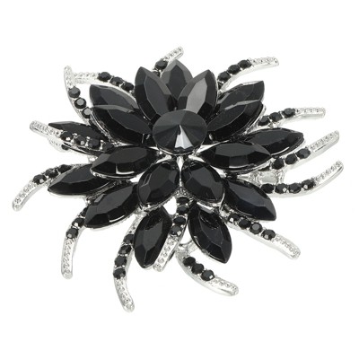 Unique Bargains Wedding Party Vintage Rhinestone Crystal Flower Lapel Brooch Pin 1 Pc Black