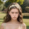 Unique Bargains Halloween Christmas Women's Hand-woven Stretch Headbands Beige Green 1 Pc