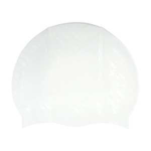 Unique Bargains Silicone Waterproof Stripes Swim Cap White 1 Pc