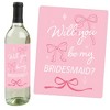 Big Dot of Happiness Tying the Knot Wine Bottle Gift Set Includes Set of 4 Pink Bow wine bottle sticker labels in the Tying the Knot theme. Wine and liquor bottle stickers each size 4 inches wide x 5 inches tall, perfect for standard 750 ml bottles. Easy to Use: Prepare your beverage bottles by ensuring they are room temperature. Removing the original bottle label is not necessary. Carefully peel one sticker Tying the Knot Wine Bottle Label from the backing and adhere to a bottle, starting at the edge and rolling to the opposite edge. Press down to smooth. High Quality Party Supplies: Tying the Knot wine bottle labels are professionally printed on a sticker paper with a glossy coating. They are waterproof and can be used on bottles that will be chilled, just be sure to apply prior to chilling. Add them to a Bride’s Maid Proposal beverage bar for an impressive, coordinated display. Adults at your party will love these fun wine labels! Unique Gift Idea: Pink Bow Wine Bottle Labels also make a great gift idea. Add Tying the Knot Wine Bottle labels to a favorite bottle of wine or spirits for a special Bride’s Maid Proposal gift. Use each wine label on a favorite beverage bottle and gift individually or create an impressive Bride’s Maid Proposal gift basket using all 4 labels on coordinating wine or liquor bottles. Wine bottle labels will easily give your Bride’s Maid Proposal gift a personal touch! Made in the USA: Wine Bottle Labels are designed and manufactured at our Wisconsin facility using materials that are Made in America. Please Note: Wine in image is not included. Please use responsibly. Big Dot of Happiness does NOT promote consumption of alcoholic beverages while driving. NEVER DRINK AND DRIVE. Alcoholic beverages are for people over 21.