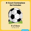 Soccer-themed Party Decorations: Celebrate the little one with this set of 8 Soccer 3D Table Centerpieces! Designed to match our GOAAAL!!! - Soccer theme, these charming centerpieces are also perfect for a baby shower, birthday or sports-themed celebration. Centerpiece Table Decorations: These 3D soccer decorations bring a sweet and cozy feel to your celebration! Arrange them across guest tables, dessert displays, or the gift table for a picture-perfect setup. Their black and white tones and adorable soccer shape make them a great fit for baby shower, birthday or sports-themed parties alike. Premium Party Supplies: Each soccer centerpiece stands 7.5 inches wide x 7.5 inches tall, making them larger than most baby shower, birthday or sports-themed table decorations. Their impressive size ensures they make an eye-catching impact without taking up too much space. High-Quality & Easy to Use: Made from sturdy cardstock paper with a glossy finish, these 3D centerpieces are printed double-sided for a vibrant, high-end look. Simply fold, secure, and place them for an effortless setup—perfect for busy hosts who want stylish decor without the hassle! Made in the USA: Soccer Baby Shower, Birthday or Sports-themed Party Centerpieces are designed and manufactured at our Wisconsin facility using materials that are proudly Made in the USA.
