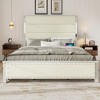 CLIHOME Bed Frame with Upholstered Headboard and 4 Storage Drawers, Charging Station and LED Lights
